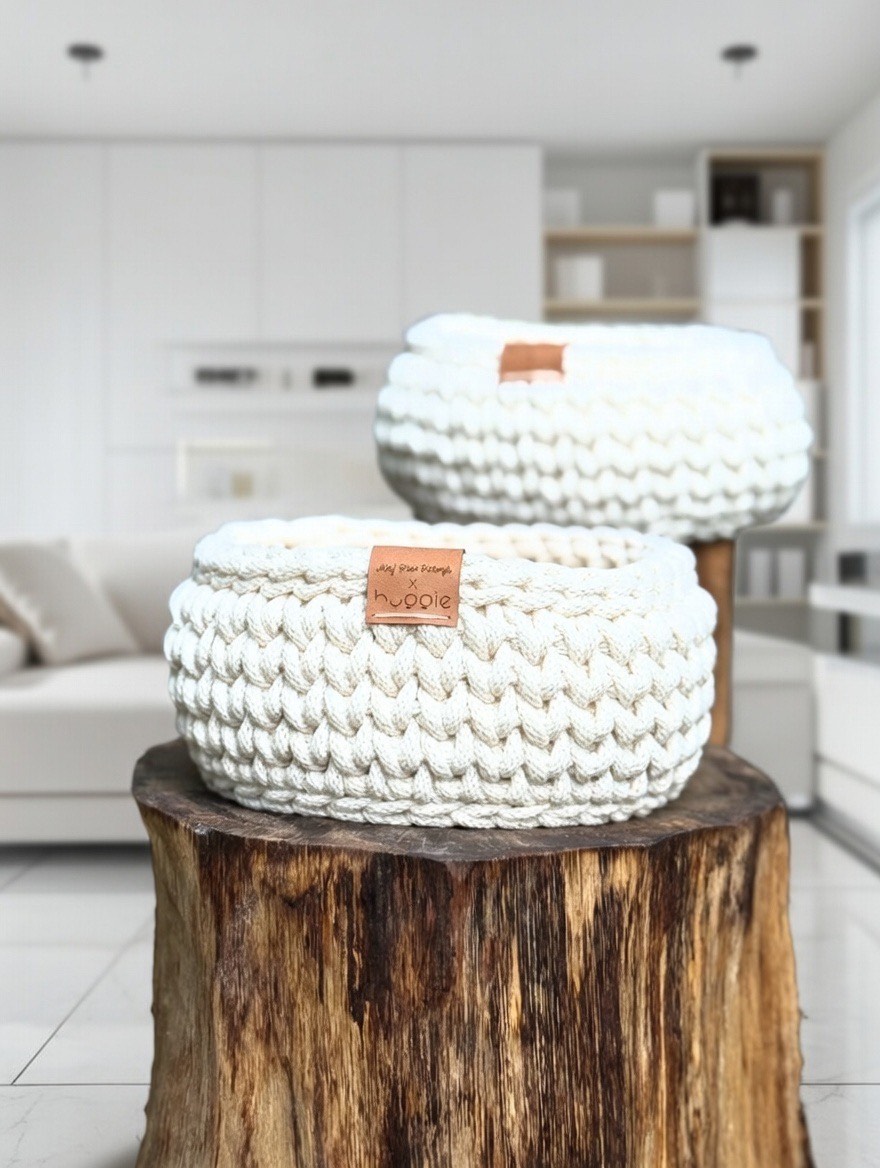 Użyty sznurek bawełniany jest przyjazny dla środowiska i w pełni bezpieczny dla dzieci. Kosze są miękkie, nie rysują podłogi ani mebli, a jednocześnie utrzymują stabilną formę. Dzięki temu możesz mieć pewność, że produkt jest funkcjonalny i ekologiczny.